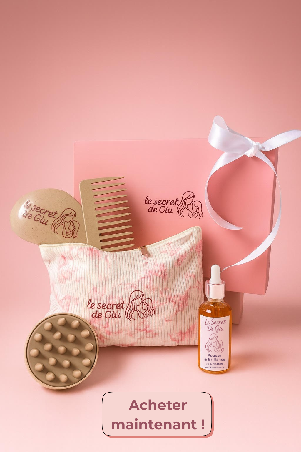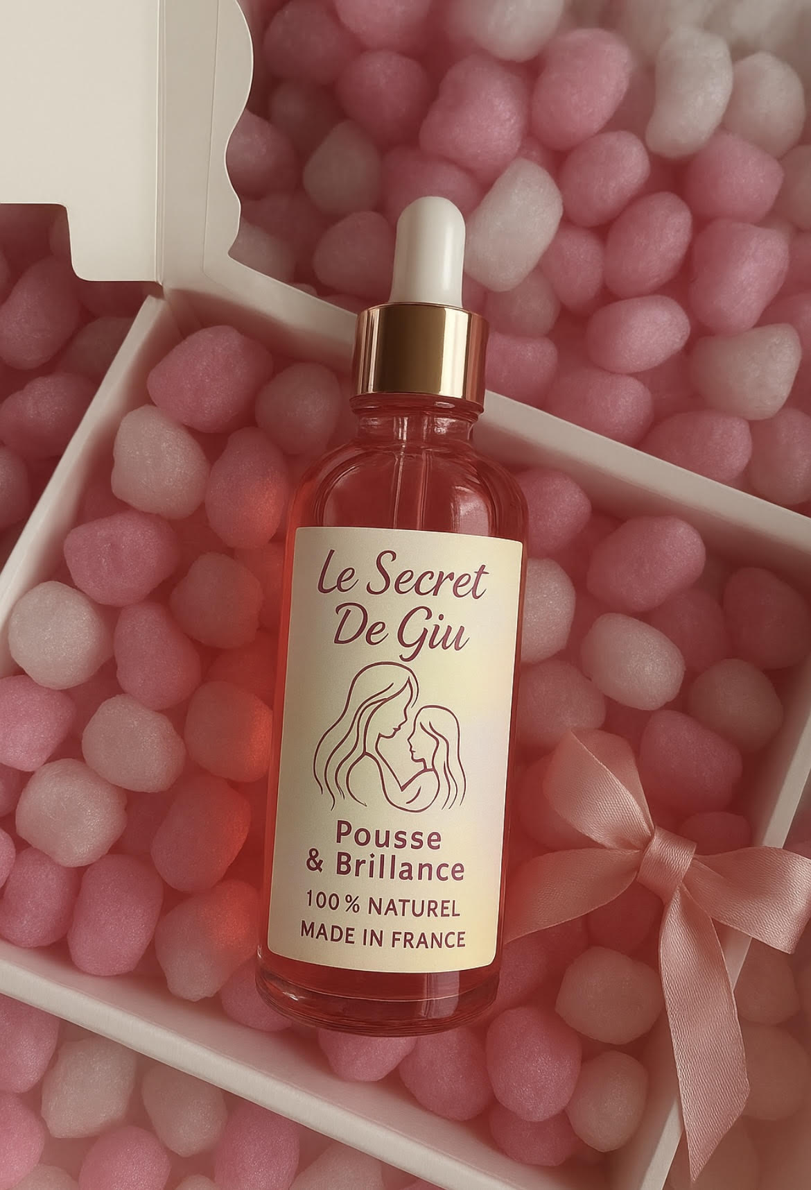 C’est ainsi qu’est née l’Huile Magique du Secret de Giu : un mélange d’huiles 100 % naturelles, pensé pour nourrir, faire pousser et donner une brillance exceptionnelle aux cheveux. Grâce à ces soins réguliers, ma fille arbore aujourd’hui une chevelure digne de Raiponce, longue, brillante, et dont elle est fière !